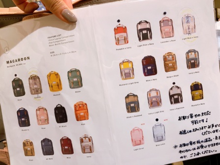 リュックのカラーはたくさんあるのですが、店頭には先程紹介させて頂いた4色のみございます。他のカラーにご興味のある方はぜひ、店頭のスタッフ、お電話でご連絡下さい。お客様のお好きなカラーのリュックを見つけてみて下さい。