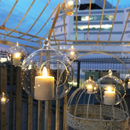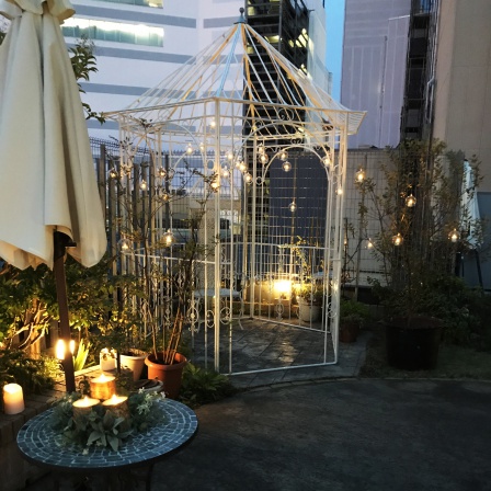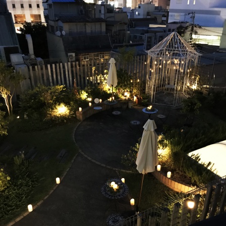 イノブン四条本店4階では8月9日(金)より、テラスのライトアップを開催中です。