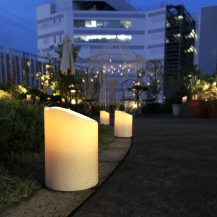 暗くなる19時ごろから、9月1日(日)まで開催していますので、ぜひ4階テラスまでお越しください。
