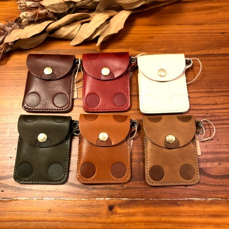 カバンなどにかけて使える便利なハトメ穴付きです。