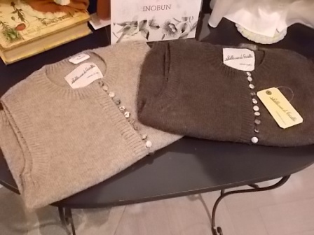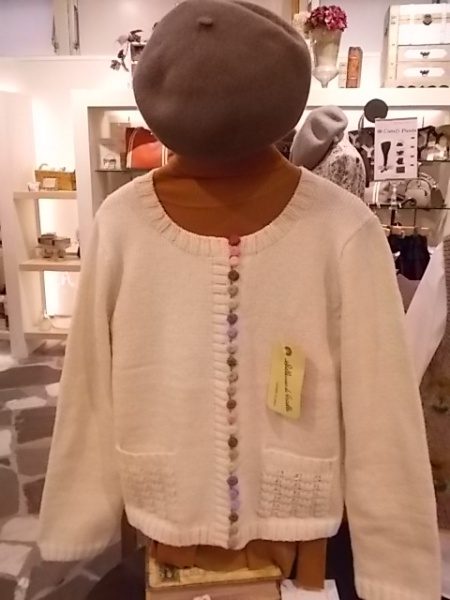カーディガンは、鮮やかな色のタートルネックセーターを合わせるととっても素敵ですし、特徴ある柄ワンピースの上にサラッと羽織るのがおすすめです。写真のようにベレー帽と合わせていただくと、より冬のオシャレを楽しんでいただけるかもしれません。又、こちらのニット達はとても暖かく、真冬を迎える前に揃えておきたい逸品となっております。