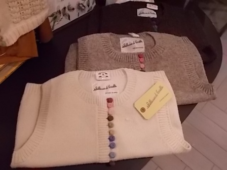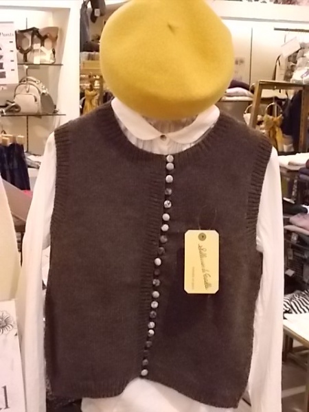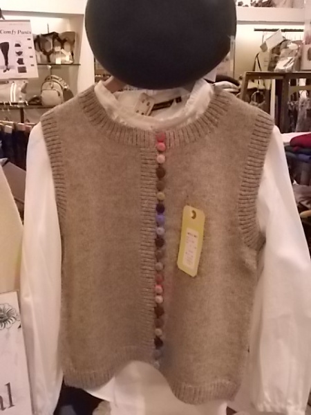 同じくカラフルなニットボタンを使用したニットベスト。。