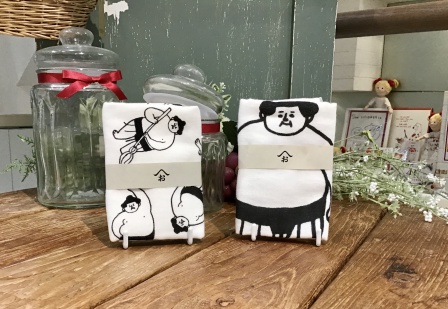 最後のご紹介はこちら、「おはぎやまミニタオル」です。表面がガーゼで裏面がパイル生地となっているので吸水力抜群。メガネだって拭けちゃいます!そして何より、おはぎやまのかわいいイラストが最高です。用もないのについつい取り出したくなってしまう、そんなハンカチは毎日の相棒にぴったりデス。