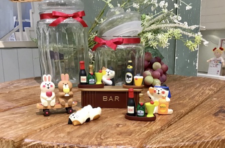 最後はこちら。ハロウィン以外にも新しくはいってきたのがこちら。三毛猫バーシリーズです。肉球で器用にシェイカーを操るバーテンニャーをはじめとして、紅白のワインウサギ、酔っ払い猫など、人間味あふれるシリーズとなっております。