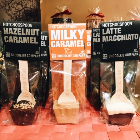 こちらはチョコレートカンパニーによる、ホットチョコスプーン。木製のスプーンの先に大きなブロックのチョコレートがついています!ホットミルクにいれてくるくる溶かせば、簡単においしいホットドリンクを楽しめます♪