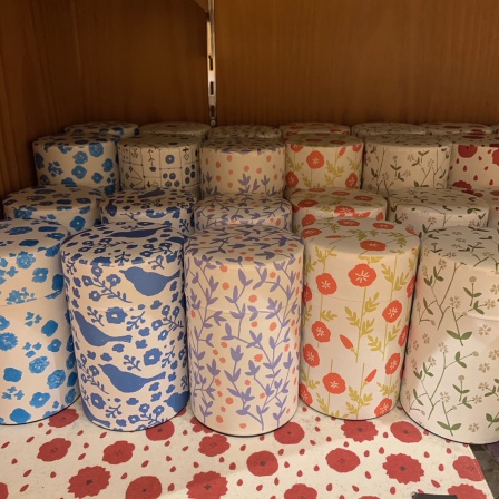 茶筒本体は静岡県で。和紙は京都で作られているので安心安全。沢山ある柄の中からお気に入りを見つけてみてください☺