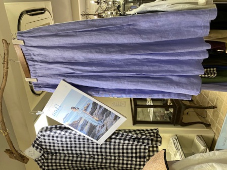 何とも言えない鮮やかなリネンスカートです。シンプルな白いブラウスに合わせて頂くだけでも様になります。実際に見ていただくと、色感の素敵さが感じられます♪