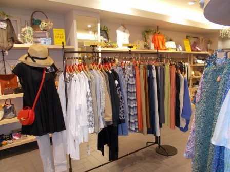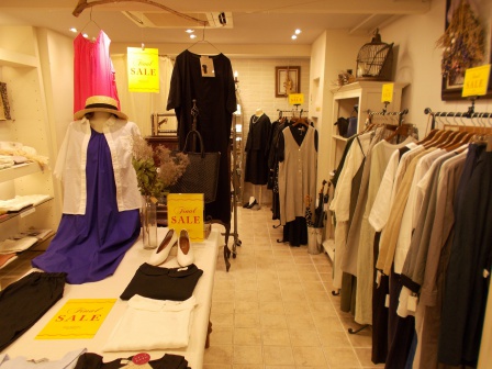 地下フロアでは、リネンを使用した着心地良いナチュラル系のワンピースやスカ