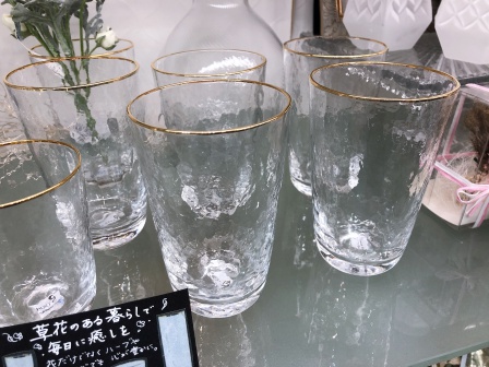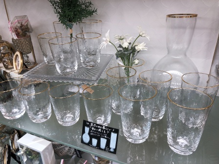 金のふちが高級感を漂わせるグラス。