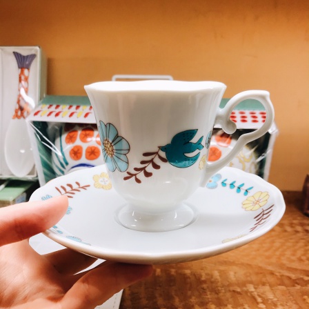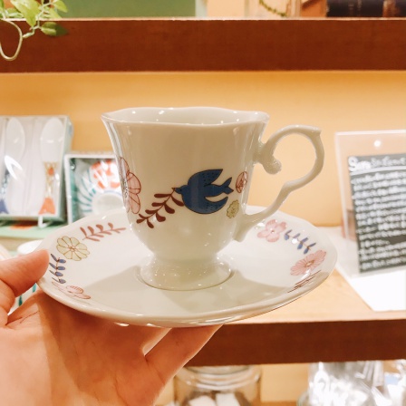 花と鳥がモチーフのカップ&ソーサーです。色は青ベースのものと、ピンクベースのものが二種類ございます。これも二種類揃えたいかわいさ。美味しい紅茶を入れてお茶会をするのにぴったりです♪