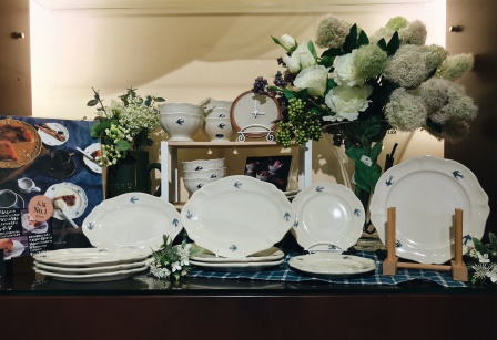 もうひとつご紹介するのはこちらのアーリーバードシリーズ。白いお皿の上に飛んでいる青いツバメがチャーミングでとっても可愛いです♪ハンドメイドなので、一枚いちまいツバメの色が少しずつ違うのもポイント。