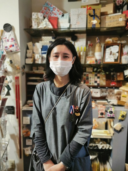 梶谷さん、イノブン歴10年以上。6才の息子さんはもうすぐ小学生。4Fでマスキングテープ、スタンプ、ラッピング担当。