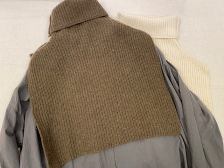 ワンピースやブラウス、ニットと重ねて頂いても素敵です。