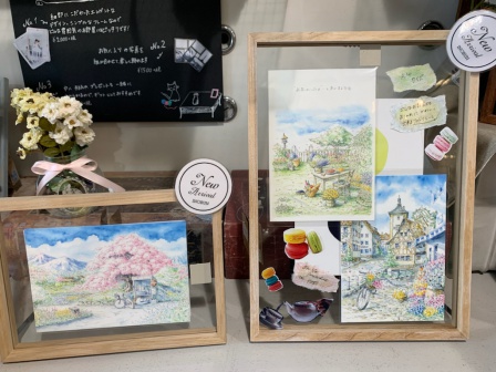 高嶋:これはポストカードの言葉に合わせて、フランス語でお茶しない?みたいな言葉とお菓子を一緒に飾りました。押し花とか入れてもかわいいです。