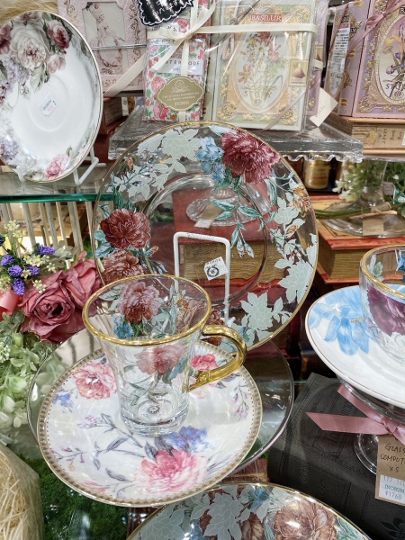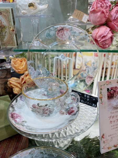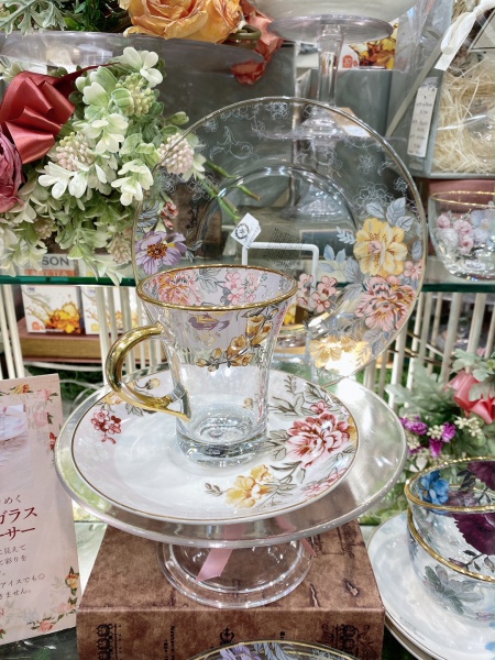 昨年登場したガラスと陶器のカップ&ソーサーはイノブン四条本店では、