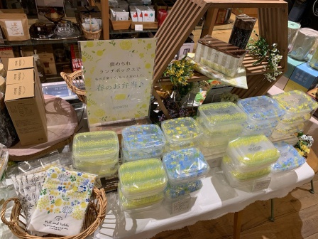 小学生のお子さんがいる河崎さん。お弁当作りは今は毎日ではないそうですが、経験しているからこそのセレクトがさすが、という感じです。機能性もしっかり、いろんなテイストの可愛いお弁当箱がたくさん。春からお弁当作りが始まる方も、ちょっと今のお弁当箱に飽きてきたな~っていう方も。もしよければ毎年お子さんにお弁当箱をねだられる親御さんも(笑)ぜひ春のお弁当箱、見に来てください。