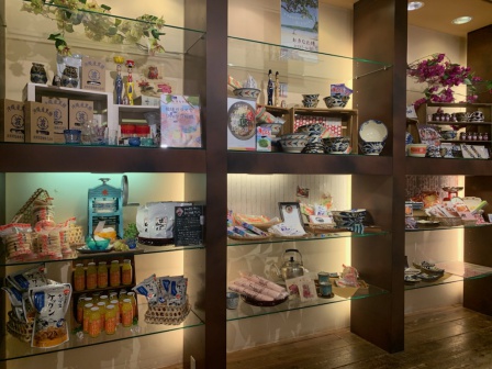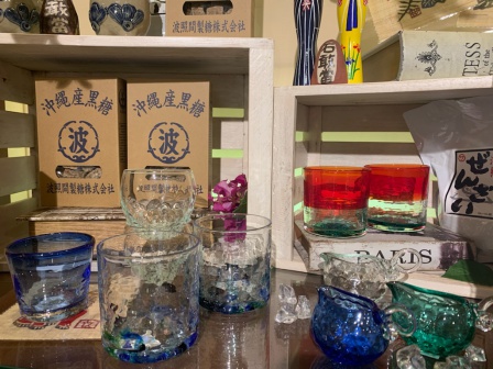 河野:端っこから順に、涼を楽しむテイストで琉球ガラスやかき氷、次は沖縄そばで、そばを食べた後にはサーターアンダギーを食べるっていう。で、その横は沖縄の夜を楽しむコーナーです。