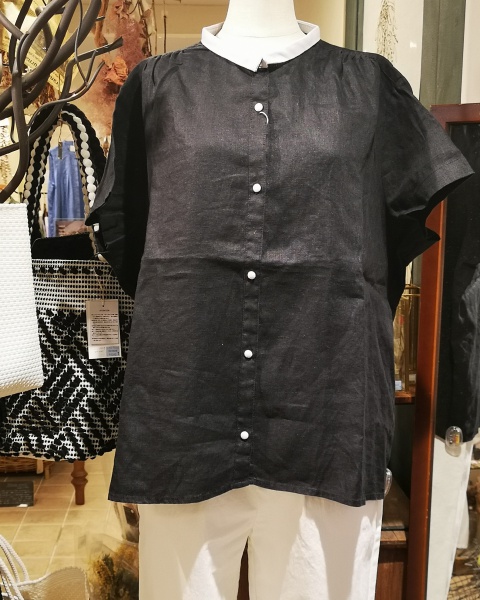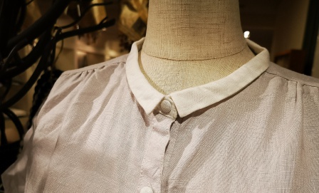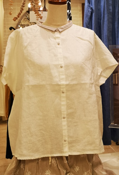 ご紹介したい夏服はたくさんありますが、スタッフのいちおしは「配色ちび衿ドルマンブラウス」です。