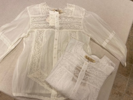 同じデザインのブラウスですが、アンティーク調に染色されたブラウスと比べると雰囲気が異なり違った印象を与えてくれますね♪