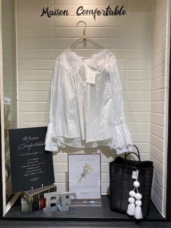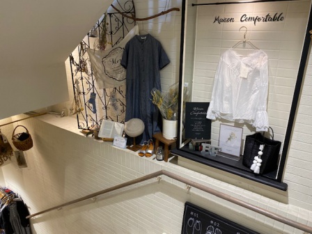 地下フロアへと続く階段に、ひときわ美しいブラウスが目に留まります◎
