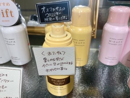 この機会にぜひ、イノブン四条本店3階へお越しくださいませ。ぜひ店頭のテスターで香りなどお試しください♪