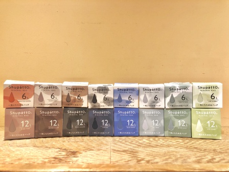 そんな便利なシュパットのエコバッグ、サイズは6Lと12Lの2種類、色味はなんとこんなにございます。