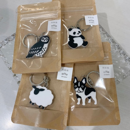 鞄などにアクセサリーとしてつけられる、動物モチーフの防災笛。