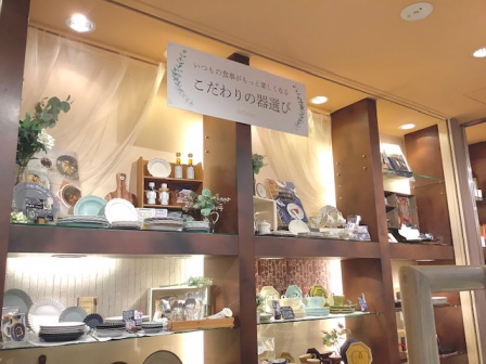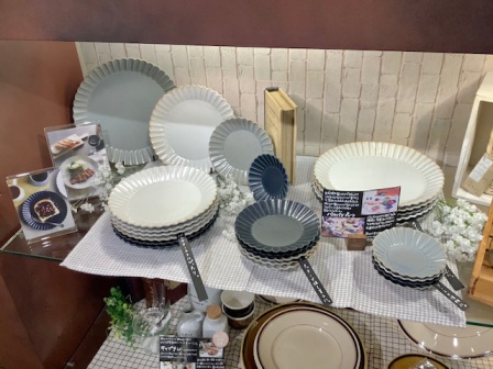 ただいま2階階段前では、「いつもの食事がもっと楽しく」をテーマにさまざまな器を集めております。