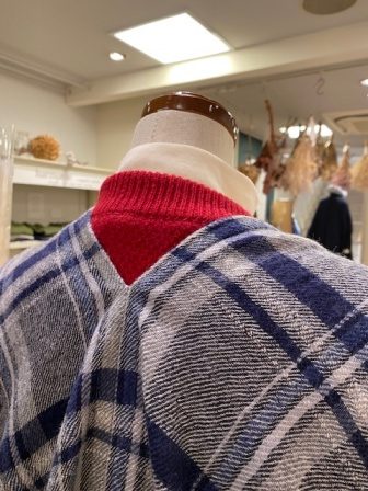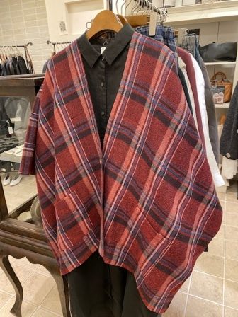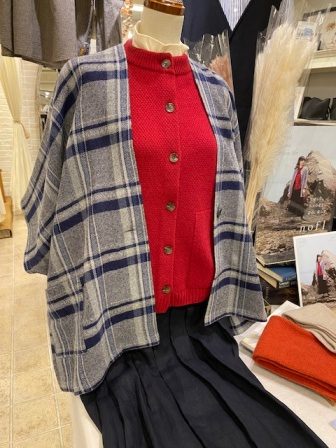 〇尾州ウールチェックポンチョ ¥17,380(税込)
