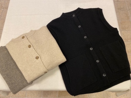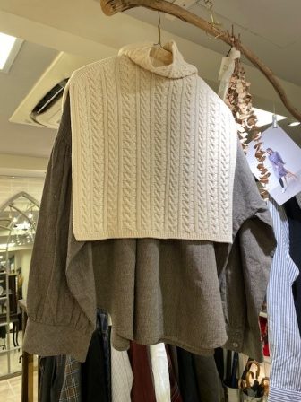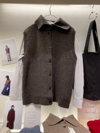 ふんわりとしたタッチのウールベストは、襟のボリュームが素敵なデザインです。