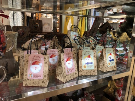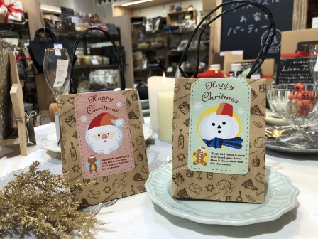 こちらはクッキーやキャンディ、チョコなどが小さなバッグ型のパッケージに入っている商品です。サンタさんのデザインと雪だるまのデザインがあります。