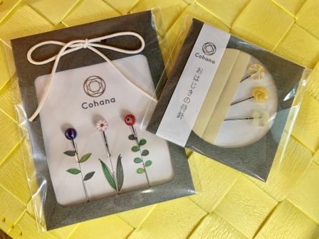 とんぼ玉の待針・おはじきの待針 各¥1540(税込)