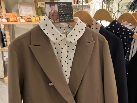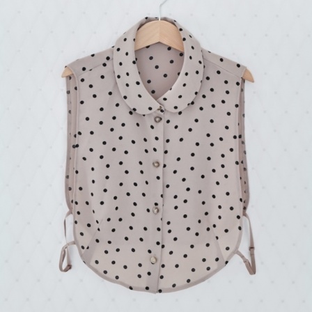 ジャケットの下に着ているのは、ドット柄が可愛い丸襟シャツ…と思いきや。こちらもつけ襟なんです。