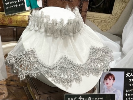 こちらは、モヘヤ素材×チュールの組み合わせによって、肌の透け感が楽しめるデザイン。スタンドカラーで、エレガントなつけ襟です。
