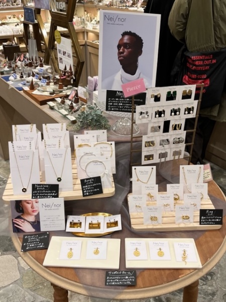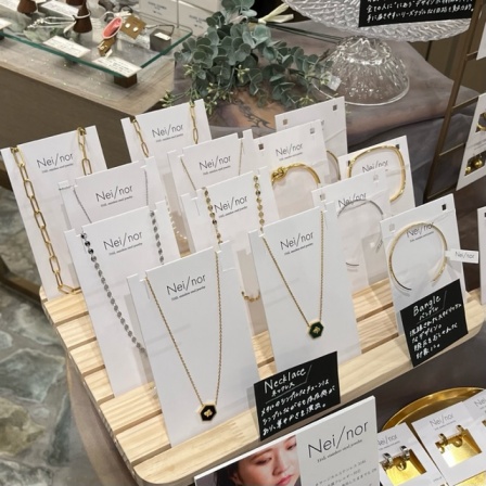 今回はアクセサリー売り場から、ただ今特集しております、”Nei/nor(ネイナー)”のアクセサリーをご紹介させていただきます。