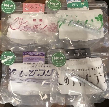 ホテルのアメニティのようなタオルと歯ブラシのセットです。