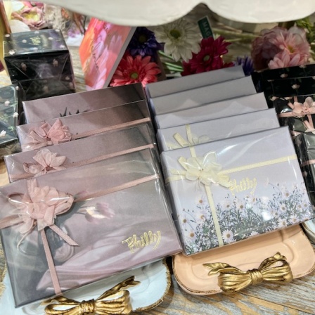 そしてそして、こだわりは包装にも。一目惚れ注意!なデザインボックスです。ガーリーすぎない、上品なデザインがポイントで、繊細な線画やレトロなフィルム写真など、テイストも様々。