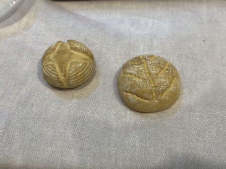 写真の商品はそれぞれ「ビアブレッド」 と「パンドカンパーニュ」 となっております。