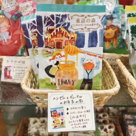 色や香りを楽しみながら、パッケージ表面のイラストと裏面の短いお話で物語の世界に浸れます。