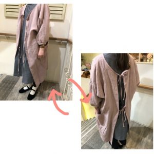 紐を後ろで結べばかっぽう着に、紐を結ばずさっと羽織ればコートに大変身します・:*