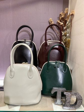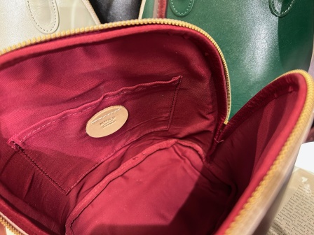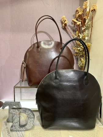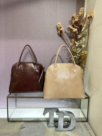 上品で深いツヤのあるレザーを使用したバッグで、小ぶりではありますがファスナーが大きく開けるので荷物の出し入れがしやすく人気です。