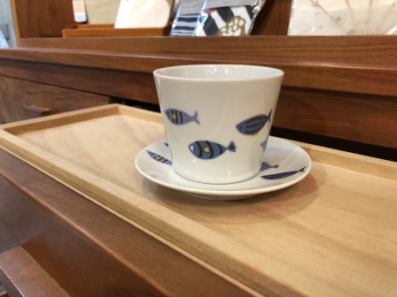 スタッフのおすすめはこちらの魚のカップアンドソーサーです。