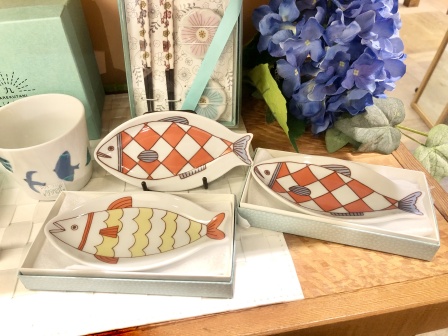 鮮やかな青色も夏らしくてこれからの季節にぴったりです。魚のデザインは人気商品が多く、こちらの大胆な色使いの小皿も人気商品の一つです。
