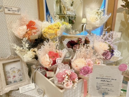 3階では、様々な種類の造花とともに、スタッフによるオリジナルのブーケをご用意しております😊🌼