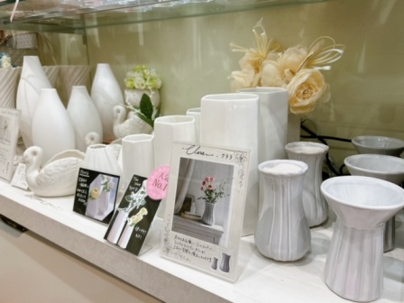 3階ではフラワーベースも種類豊富にご用意しておりますので、