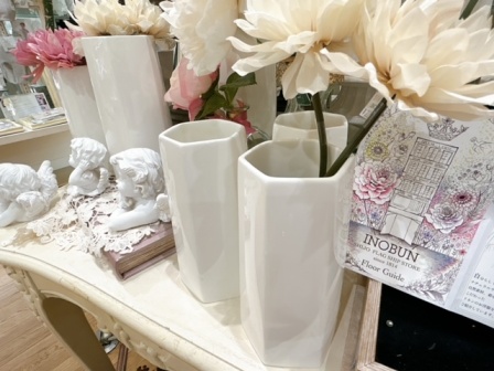最近の人気は、陶器のシンプルな六角形のフラワーベースです(*^^*)