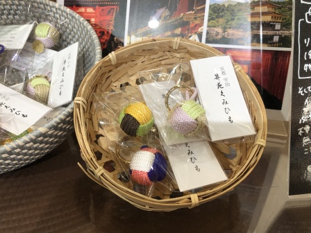 こちらのストラップには、宇治の伝統的な大田巻という技術を使って作られています。中を空洞にしてくるくると紡いだ糸を巻きつけているので、切れ目が見えないのが特徴で、切れ目がない=「縁が切れずに続く」という意味が込められています。ラッキーアイテムとしてカバンなどにつけてみてはいかがでしょうか?