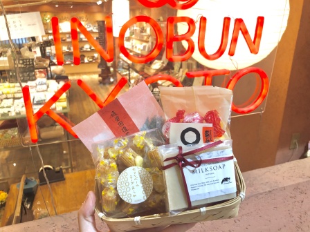 2階では京都にゆかりのあるこだわりの詰まった商品をたくさんご用意しております。また階段前の京都博も引き続き開催中でございます。京都の魅力を感じにぜひイノブン四条本店2階までお越しくださいませ。