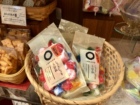 ラムネは青木光悦堂さん、あられは京菓堂さんという京都の老舗お菓子屋さんが作っている商品です。
