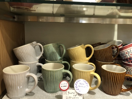 こちらは2階で大人気のスタジオ’ M さんの商品で、豊富なカラーバリエーション、食洗機、レンジ共にOKで丈夫なところ、そしてどんなデザートの盛り付けにもぴったりな万能なデザインが魅力です。
